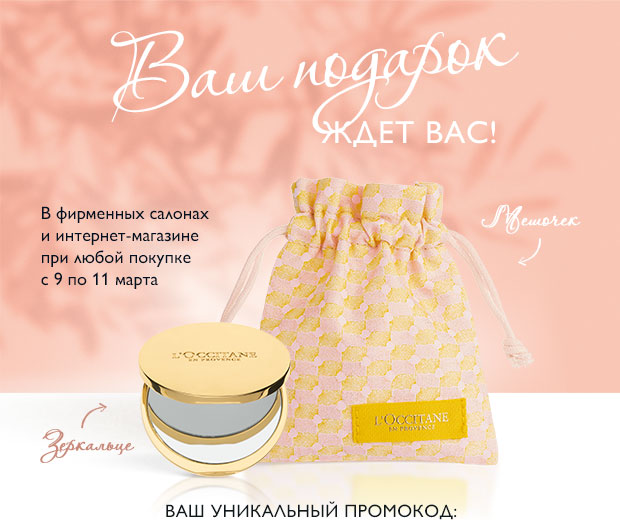 Условия акции: При любой покупке в фирменном или интернет-магазине, вы получаете в подарок зеркальце.Промокод: CLZCQE333Действие акции: с 09.03.2018 по 11.03.2018Перейти к покупкам!