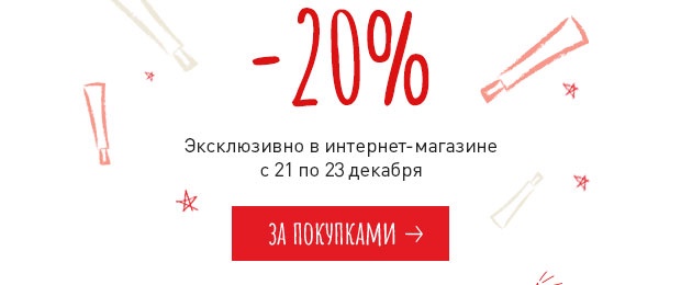 566 0 Условия акции: скидка -20% на весь ассортимент в интернет-магазине Erborian.Действие акции: c 21.12.2018 по 23.12.2018 Перейти к покупкам! 24.12.2018 Автор статьи: Мария Владимирова Поделиться с друзьями