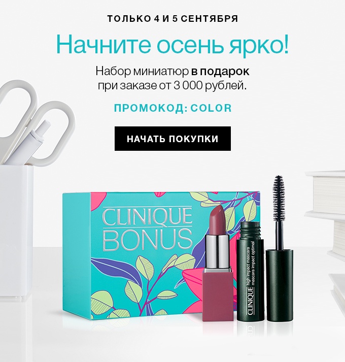 530 0 Условия акции: при покупке на сумму от 3000 рублей в интернет-магазине Clinique в подарок вы получаете набор миниатюр.Промокод: COLORДействие акции: с 04.09.2018 до 05.09.2018Перейти к покупке! 04.09.2018 Автор статьи: Мария Владимирова Поделиться с друзьями