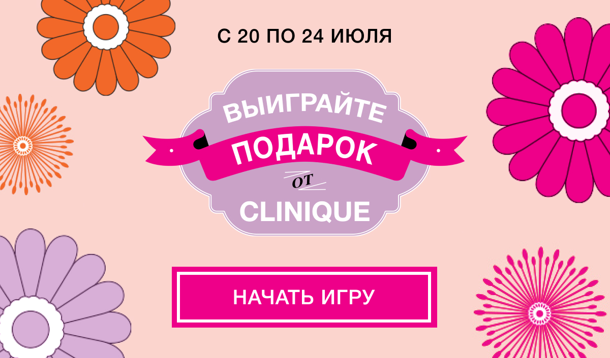 Условия акции: сыграйте в игру и получите шанс воспользоваться воспользоваться уникальным предложением при покупке на сумму от 4200₽ в интернет-магазине Clinique. Действие акции: с 20.07.2020 по 24.07.2020