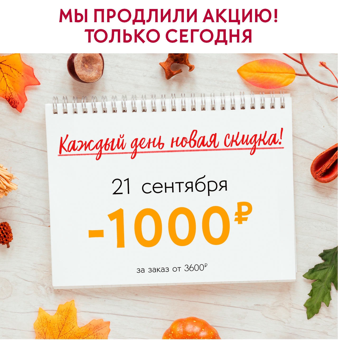Условия акции: скидка -1000₽ при заказе на сумму от 3600₽ в интернет-магазине Yves Rocher. Промокод: EX1YRVPДействие акции: только 21.09.2020 до 23:59 по московскому времени.